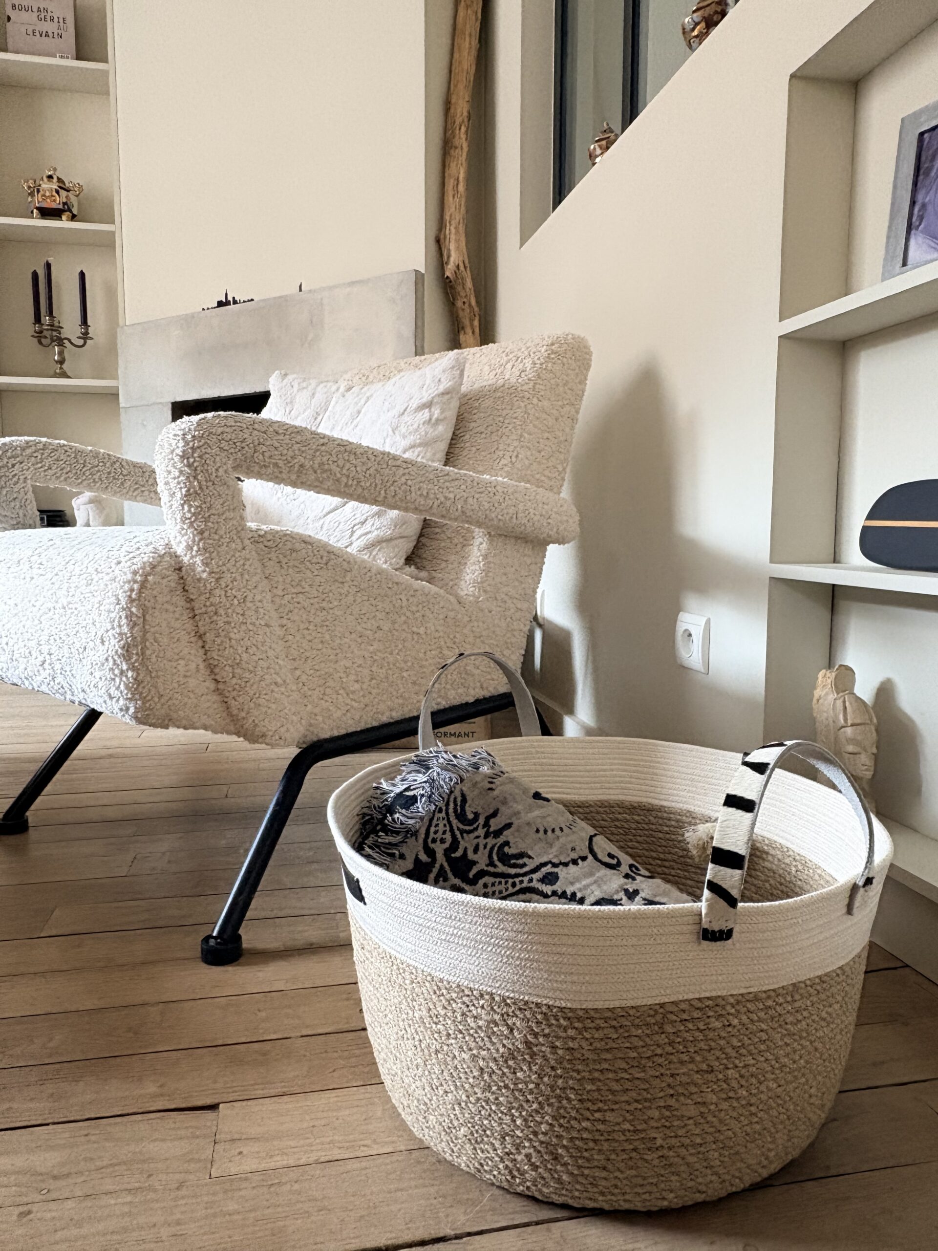 Panier de décoration en corde de chanvre et ganse de coton d’origine France – Anses décoratives en cuir à poils imprimé zèbre