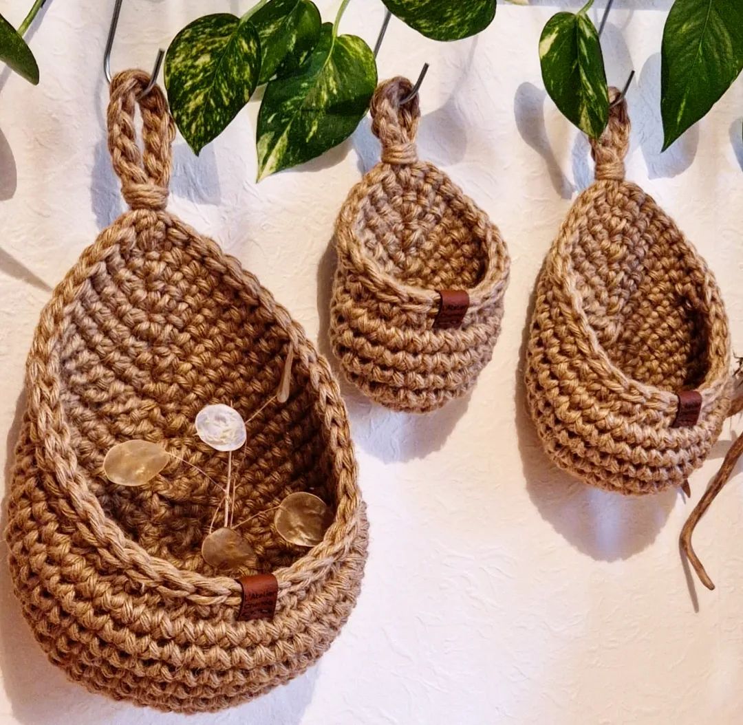 🌿 Paniers à suspendre 🌿 Réalisés au crochet en fibres naturelles. Polyvalents, ils peuvent être utilisés dans la cuisine pour ranger des fruits ou des condiments, mais aussi dans n’importe quelle autre pièce de la maison comme vide poche, ou élément de décoration en ajoutant une touche de verdure avec une plante ou des fleurs séchées.