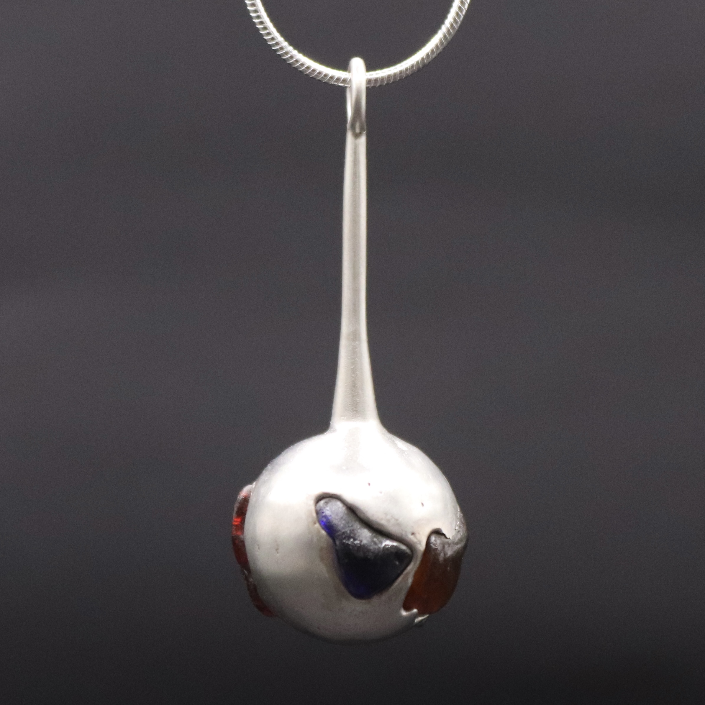 Pendentif en argent recyclé et verre de mer poli – Pièce réalisée dans la Terre de Delft – Finition mate – collier maille serpent en argent – Hauteur 4 cm