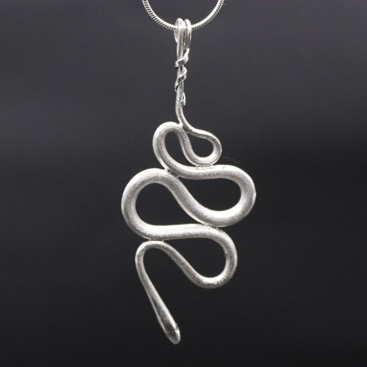 Pendentif serpent en argent 950 forgé au marteau – Chaine en argent maille serpent de 45 cm – Hauteur du pendentif 6 cm