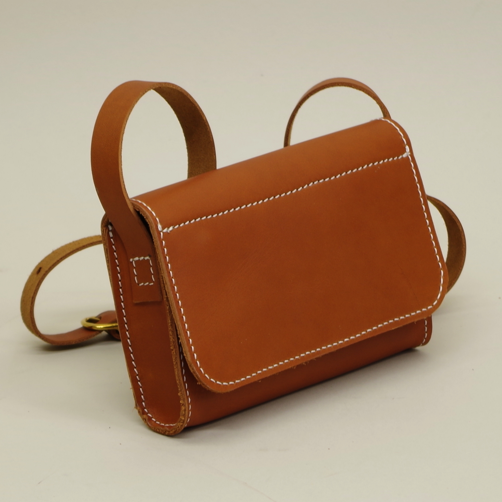 Pochette Bandoulière Cuir Tabac Cuir tanné en France de manière végétale (pas de chrome), 3 poches: une petite devant, une plaquée intérieure, une zippée dans le rabat, Fermoir par top aimant, Largeur: 18,5 cm, Hauteur: 13,5 cm, Epaisseur: 4,5 cm.