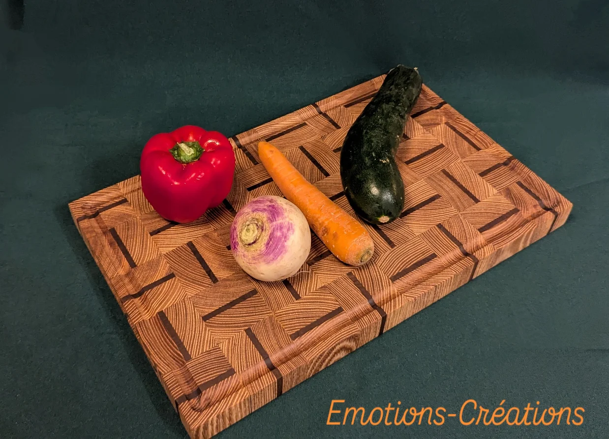 Planche à découper ou de présentation en bois de bouts en acacia et noyer. 40*24*2,3 cm