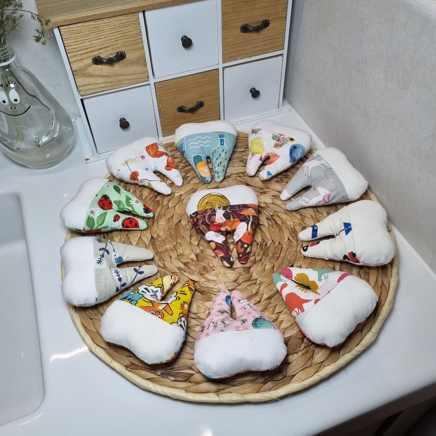 Petite pochette à dent de lait – Un moment magique à préserver La perte des dents de lait est une étape importante et pleine de magie pour les enfants. Pour célébrer ce moment, je propose des petites pochettes à dent de lait douillettes, confectionnées avec soin dans mon atelier artisanal. Ces coussins tout doux permettent de garder précieusement la dent tombée, tout en offrant un espace pour glisser la pièce que la petite souris déposera durant la nuit. Un rituel tendre qui émerveille petits et grands. Fabriquées en matériaux de qualité, ces pochettes sont résistantes et pensées pour durer, devenant un joli souvenir de l’enfance. Leur taille compacte facilite leur rangement sous l’oreiller. Offrez un cadeau personnalisé et symbolique, idéal pour accompagner cette étape unique. Ces pochettes à dent de lait faites main en France allient douceur, praticité et émotion.