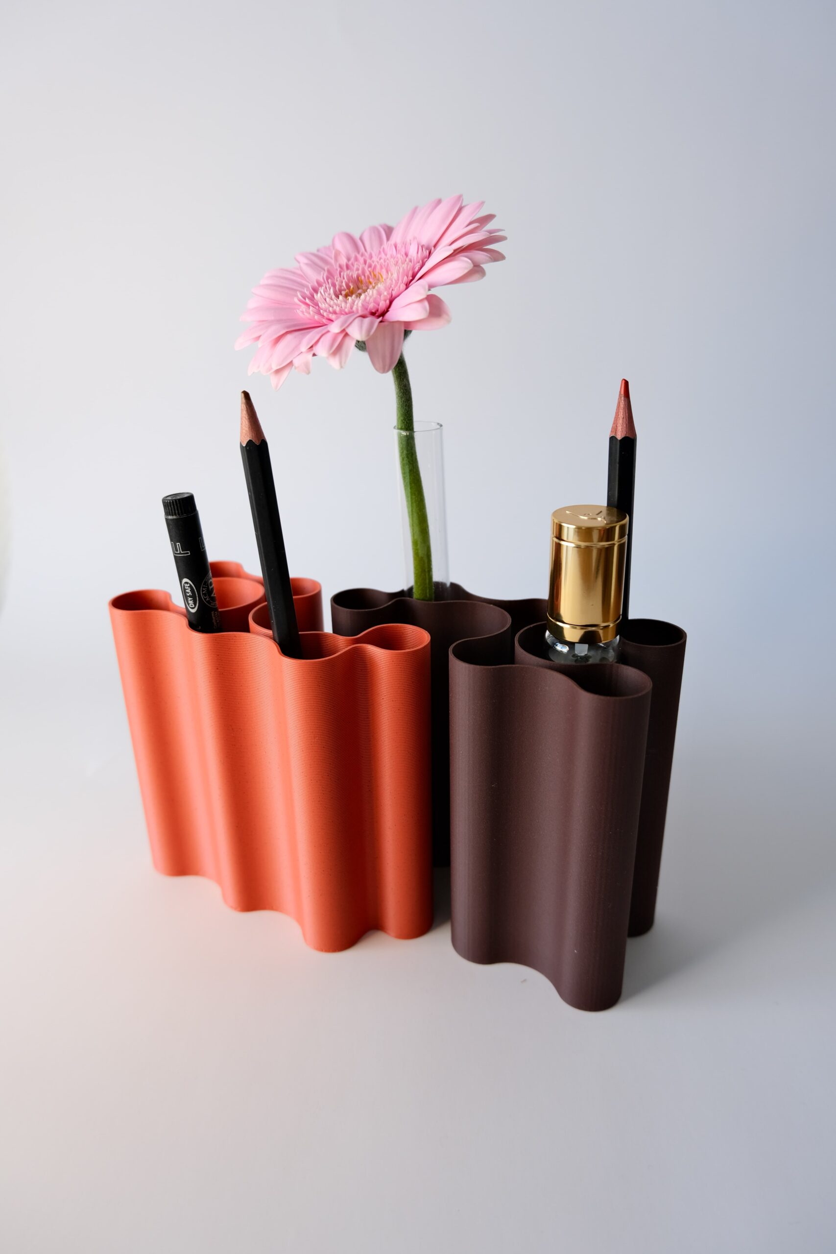 Les stylos qui trainent, c’est fini! Organisez votre espace de travail avec ce pot à crayons design qui, de par ses formes tubulaires peut accueillir tout un tas de crayons ou de stylos mais également un tube à essai permettant d’ajouter des fleurs et dynamiser cet objet devenu trop banal. Superbe idée cadeau ou tout simplement pour décorer votre propre espace de travail ou personnel.