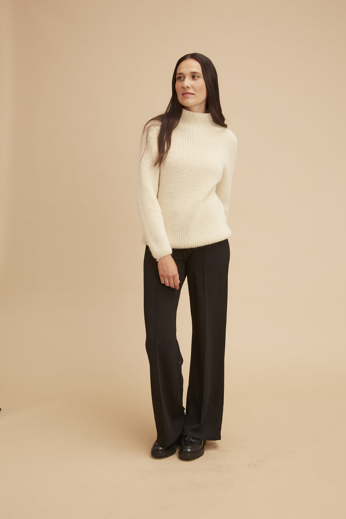 Ce pull en laine alpaga et mérinos pour femme incarne tout ce que l’hiver a de plus doux et élégant. Tricoté sans couture en côtes perlées, il associe un tombé structuré à une texture souple, à la fois chaleureuse et légère. Son col montant protège naturellement du froid tout en apportant une touche raffinée au pull. Les manches montées viennent souligner une coupe féminine et confortable, pensée pour le quotidien comme pour les moments de détente. Grâce à l’alliance de ces deux fibres d’exception, ce modèle réunit toutes les qualités que l’on attend d’un vêtement haut de gamme : chaleur, légèreté, douceur et durabilité. Ce mélange crée un fil à la fois fluide et isolant, parfaitement adapté aux saisons froides. Ce pull en laine s’accorde facilement à vos tenues : glissé dans une jupe taille haute pour un look élégant, porté avec un pantalon ample pour un style plus décontracté, ou superposé à une robe pour jouer les contrastes.
