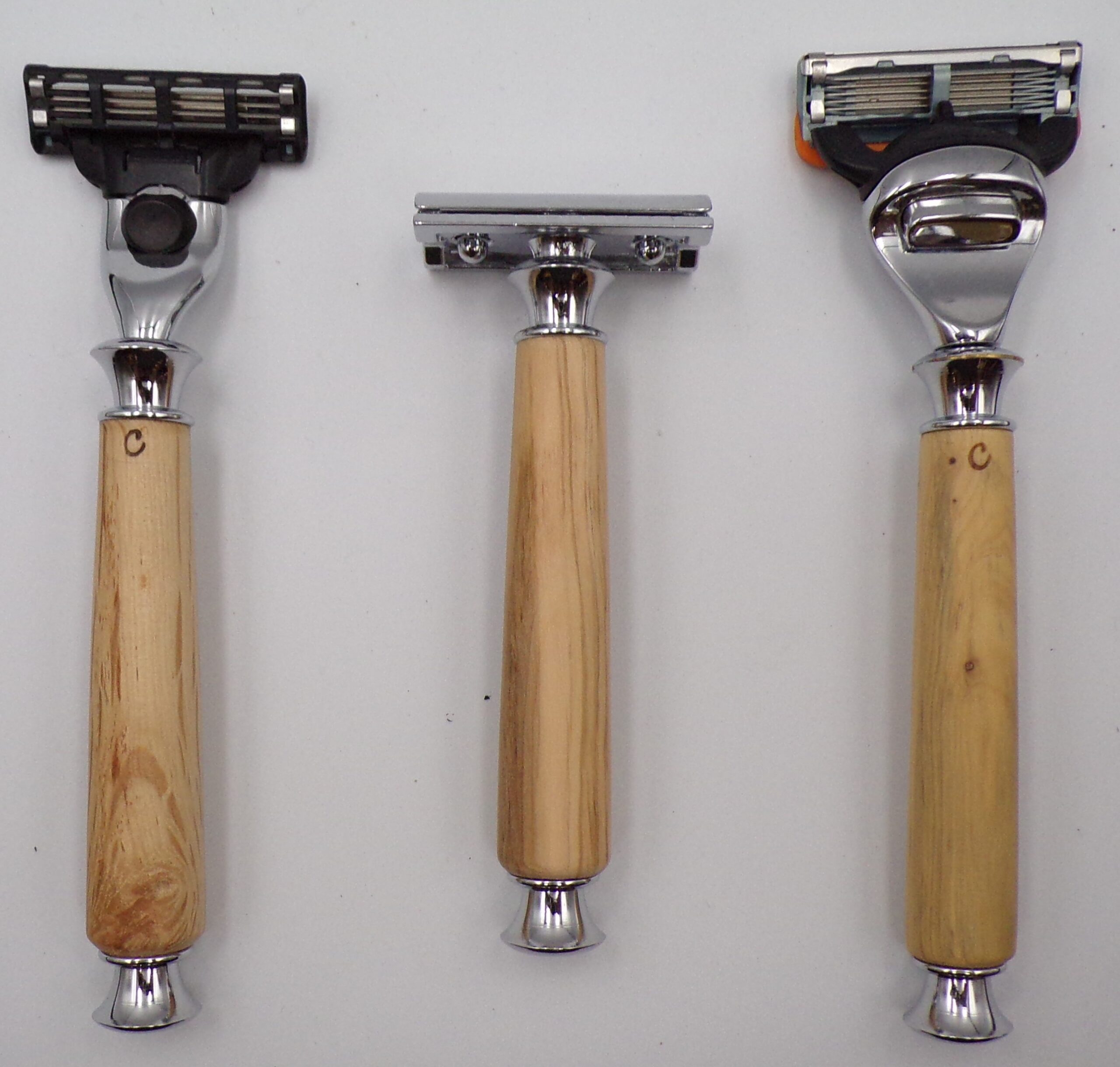 Rasoir en bois tourné compatible Gillette® Mach3®, Gillette® Fusion 5 ou sureté