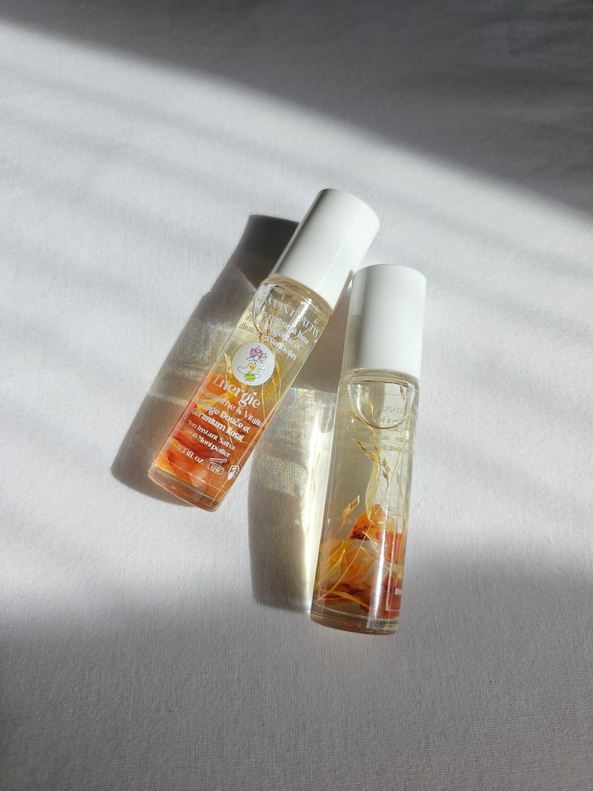 Je crée des roll-ons sans alcool, à base d’huiles essentielles biologiques, de fleurs et cristaux ! Ils sont réalisés en laboratoire près de Montpellier et contiennent 99% d’ingrédients issus de l’agriculture biologique. Les fleurs et plantes sont issues de collaborations avec des producteurs biologiques de la région Occitanie ou bien récoltées et séchées par mes soins selon les règles de l’herboristerie. Depuis Mai 2024, je suis fière de vous annoncer que ma marque a obtenue le label « Fabriqué en Occitanie »! Chaque roll-on a des vertus spécifiques, alors je vous laisse choisir le votre en fonction de vos besoins !
