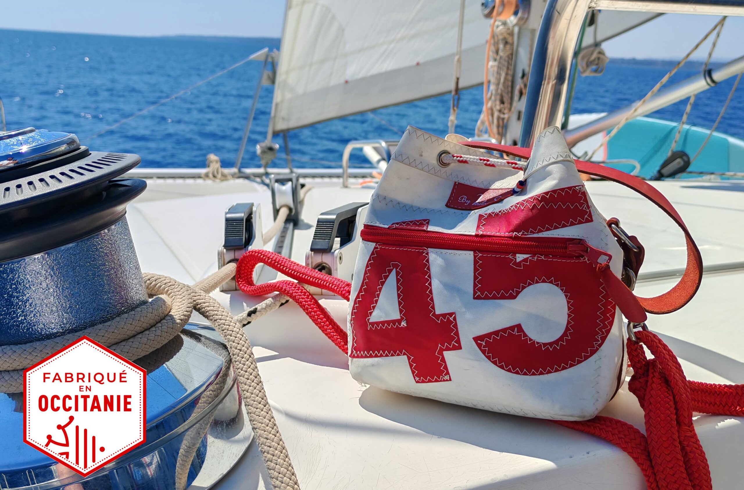 Sac seau en voile de bateau recyclée. Porté main ou épaule, Anse main en cuir de vachette, bandoulière en gaine épissée, Une poche zippée, Cordon de serrage en cordage marin, passant cuir, Base: 19 cm X 14 cm, hauteur 21 cm Vous pouvez choisir votre numéro et sa couleur.