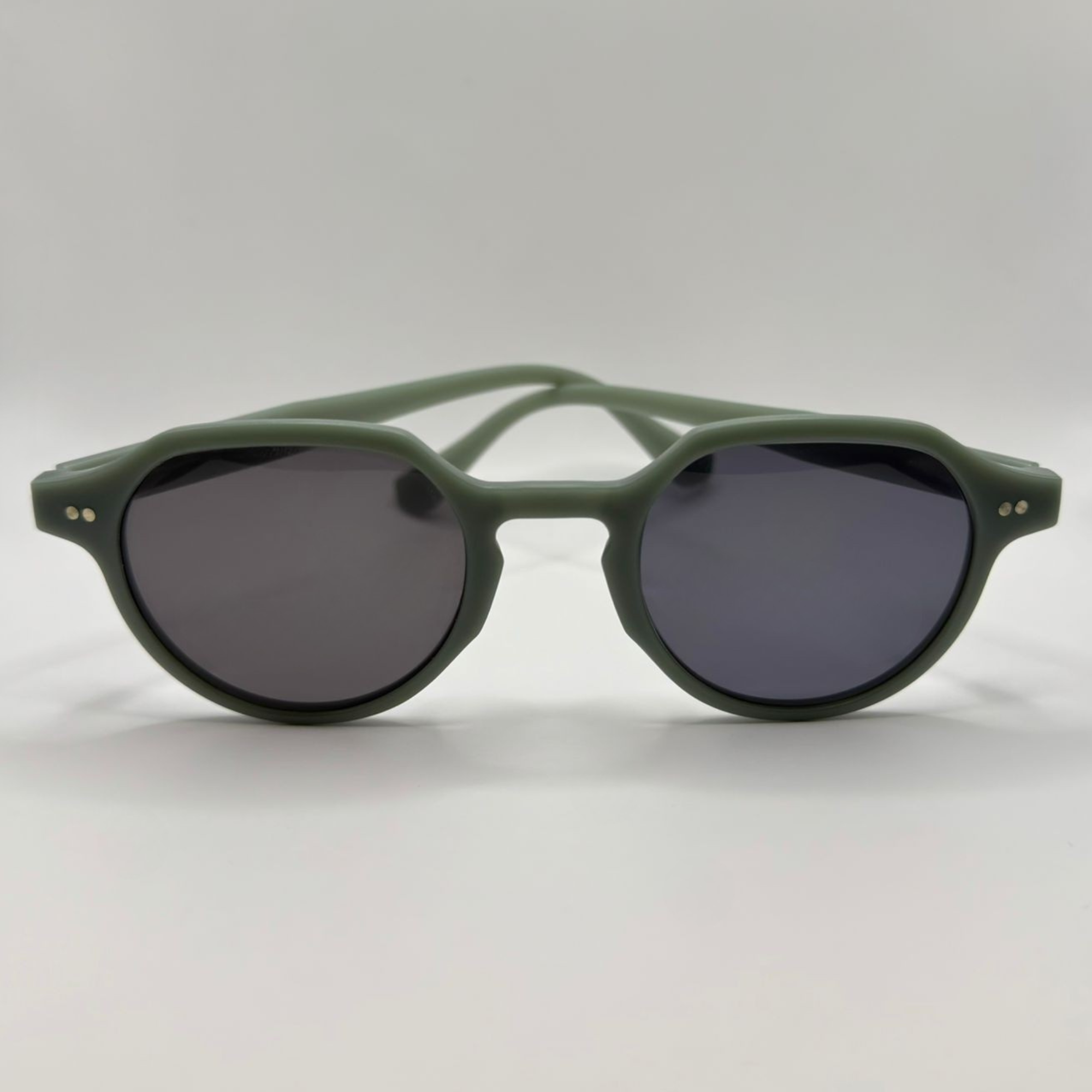Rondes & équilibrées, pour vivre chaque instant – Fabriquées en France (Occitanie) – Montures écoresponsables en plastique 100 % recyclé – Verres solaires, 2 couleurs au choix* – Vendues avec une pochette en feutrine & une lingette microfibre recyclées – En option : un étui en cuir recyclé *Verres polarisés Cat. 3, couleur gris ou brun, durcis et avec traitement antireflet