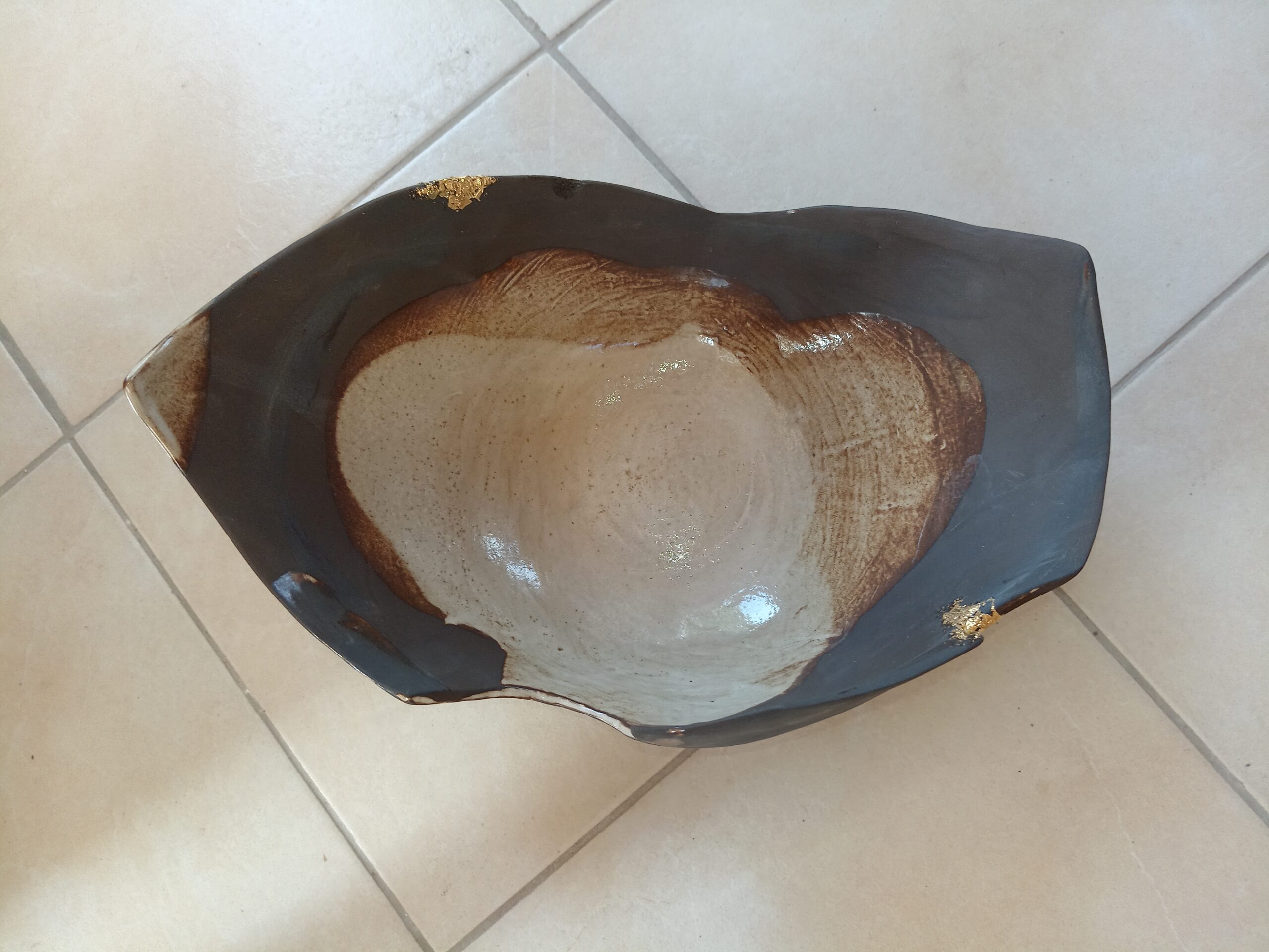 « saladier » grès noir, émaillé à l’intérieur, terre brute en extérieur pour sublimer la couleur noire