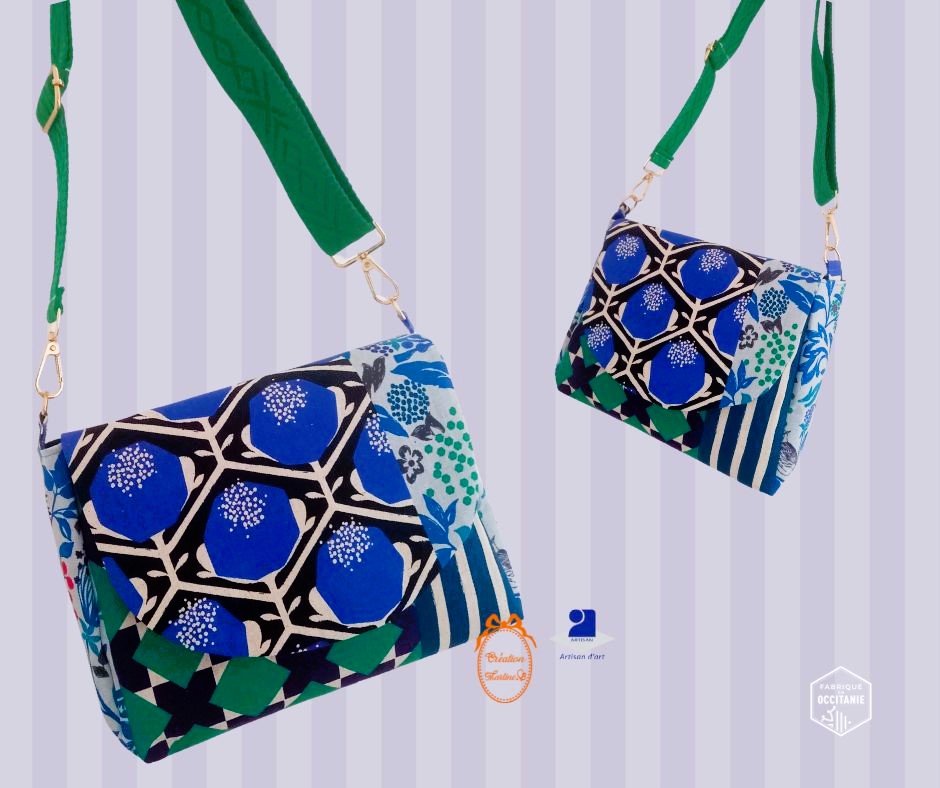 Atelier artisanal non ouvert au public. Achat du tissu et création selon la demande si c’est une commande ou improvisation selon mon humeur. Je compose mes patrons pour les sacs, trousses. Je travaille le coton, le velours, le taffetas et le lin. J’aime ajouter des galons, des ornements, des cristaux Swarovski. Le tissu est fabriqué en France. La création est fabriquée à Villeneuve-lès-Avignon. Pour les œuvres d’artistes : j’achète les droits de l’œuvre à l’artiste, un contrat est établi pour le nombre de pièces et l’exclusivité « Création Martine.B
