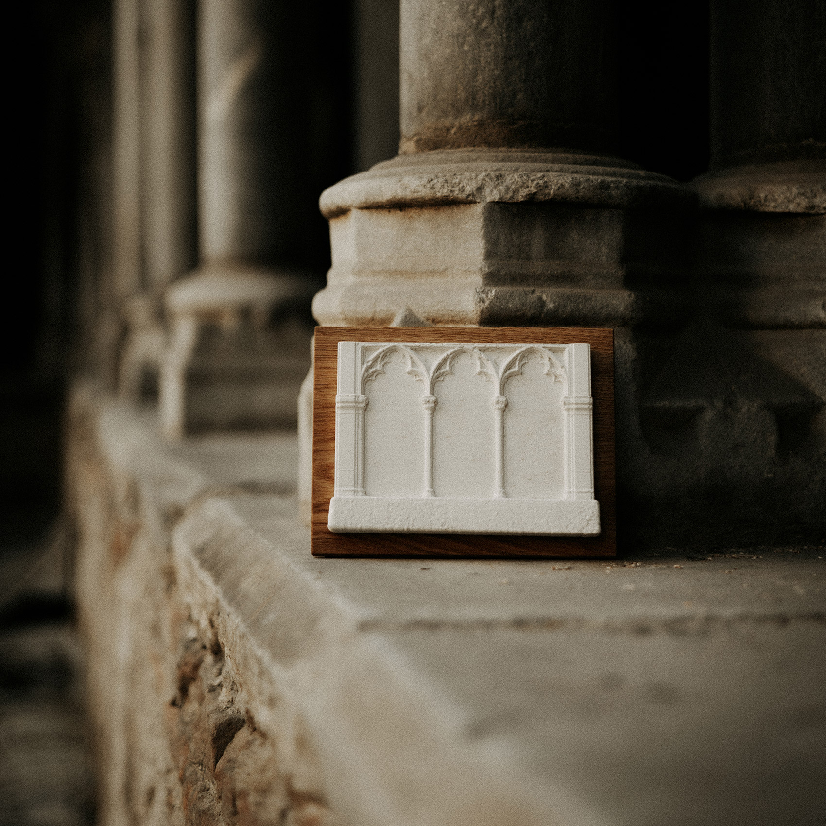 À Toulouse, le cloitre des Augustins représente un petit havre de paix qui dégage l’essence de l’architecture gothique Occitane. Plâtre et sable sur monture en bois massif. Ce bas relief fut réalisé à partir d’une captation 3D prise au sein même du cloitre, en partenariat avec le musée des Augustins. La texture du sable adouci par le plâtre, et la chaleur du chêne massif.
