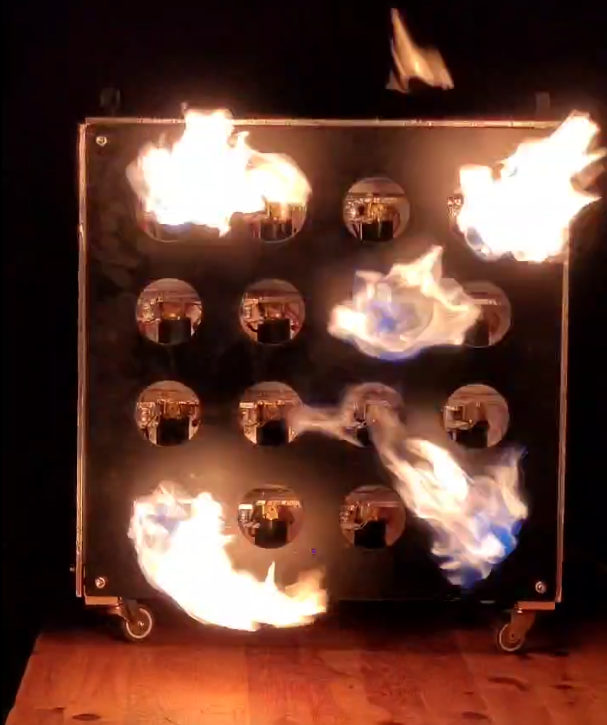 Le traceur de flammes est un projecteur de flammes de spectacle. Il est constitué d’une quadrillage de têtes cracheuses de flammes orienté face au public. Chacune agit comme un pixel et permet de constituer un écran de flammes de taille variable, car les traceurs de flammes peuvent s’assembler modulairement. L’ensemble est conçu pour être posé ou suspendu, possiblement intégré avec des projecteurs classiques. Chaque machine présente une face carrée de 600mm de côté. La première version fonctionne à gaz et est donc, au vue des contraintes réglementaires, prévue pour un usage extérieur.