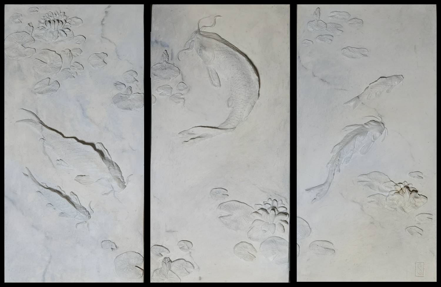 Triptyque Carpes Koï – Imitation Marbre