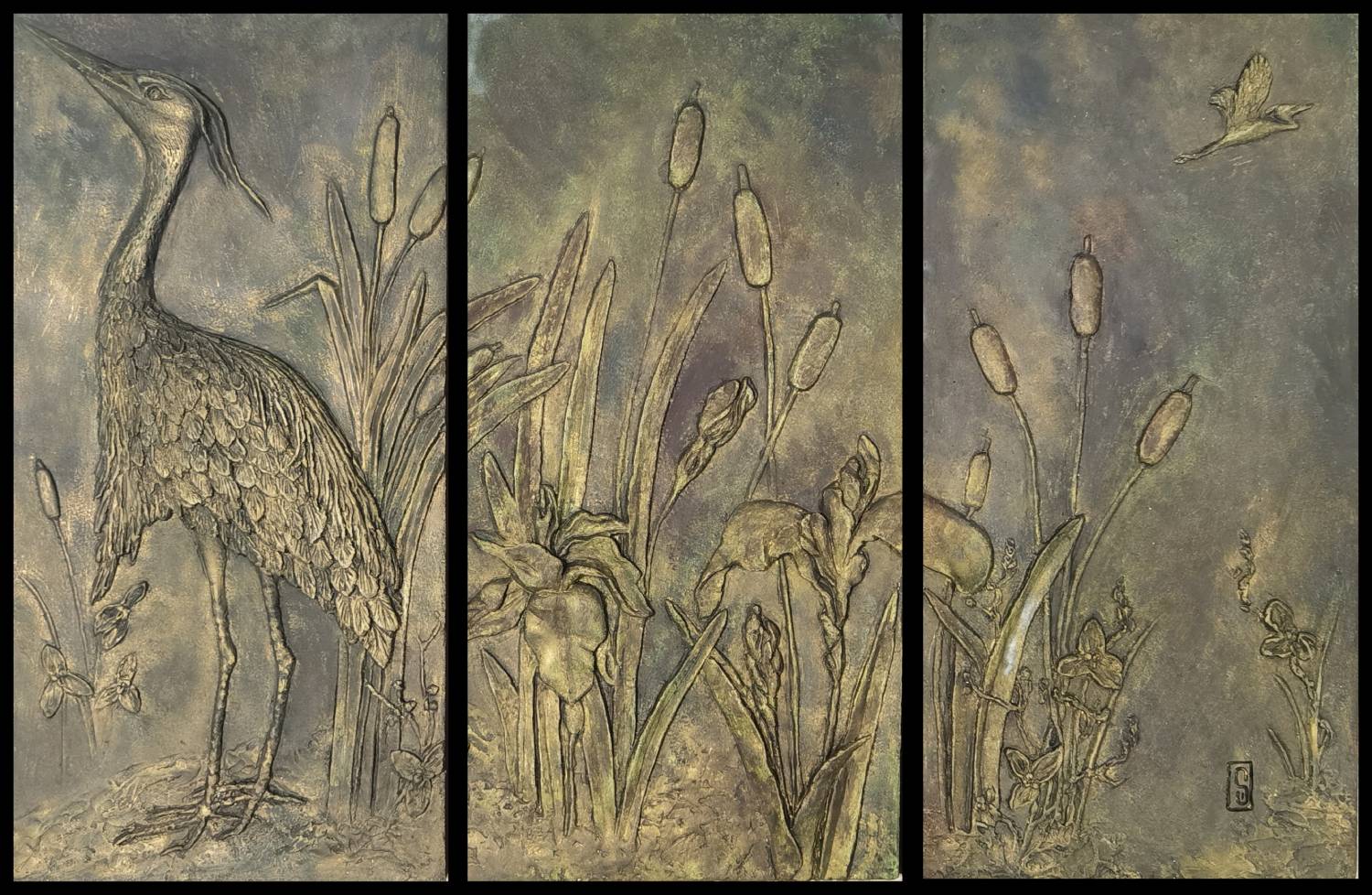 Triptyque Grues – Imitation Bronze