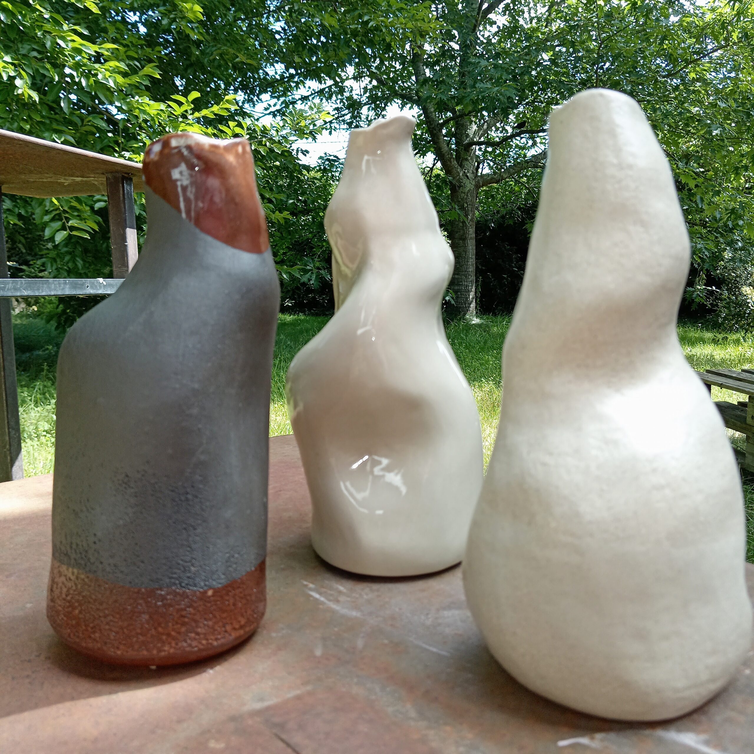 Je suis potière céramiste, installée à Nègrepelisse (82), atelier où je reçois les personnes intéressées par mon travail. Je travaille le grès noir et le grès blanc, pour un rendu épuré. Je peux mêler ces 2 terres pour un effet marbré. Je travaille à la plaque, ainsi chaque pièce est unique, tant sur la réalisation, la forme et la finition. Lorsque la pièce est à l’état ‘cuir’, je remodèle la forme, j’affine la pièce. La première cuisson est à 1020°, les pièces sont ensuite émaillées, en couverte transparente, satinée ou brillante. Je n’utilise pas d’émaux colorés. Mon travail se différencie ainsi de la plupart des céramistes. La deuxième cuisson, qui assure l’imperméabilité de la pièce, est à 1240°. Je propose des pièces ‘utilitaires’ et/ou décoratives, selon la lecture de chacun. Je m’inspire de mes envies, besoins, de la nature. Le hasard, le plaisir de la création, les rencontres enrichissent mon travail. Je vend mes produits à l’atelier, sur des marchés de créateurs