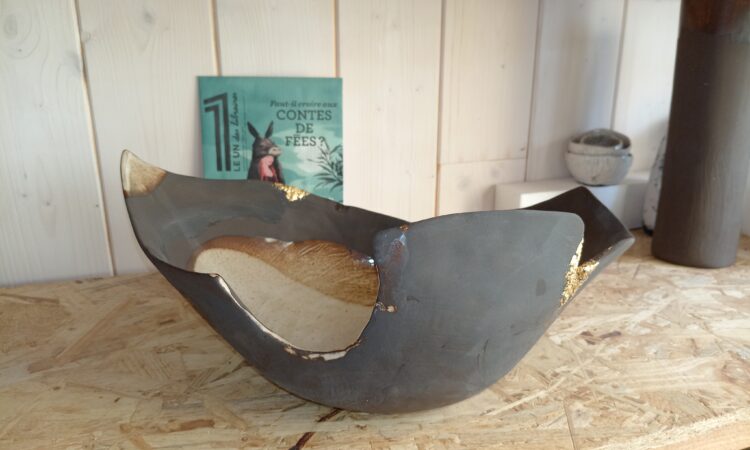 Je suis potière céramiste, installée à Nègrepelisse (82), atelier où je reçois les personnes intéressées par mon travail. Je travaille le grès noir et le grès blanc, pour un rendu épuré. Je peux mêler ces 2 terres pour un effet marbré. Je travaille à la plaque, ainsi chaque pièce est unique, tant sur la réalisation, la forme et la finition. Lorsque la pièce est à l’état ‘cuir’, je remodèle la forme, j’affine la pièce. La première cuisson est à 1020°, les pièces sont ensuite émaillées, en couverte transparente, satinée ou brillante. Je n’utilise pas d’émaux colorés. Mon travail se différencie ainsi de la plupart des céramistes. La deuxième cuisson, qui assure l’imperméabilité de la pièce, est à 1240°. Je propose des pièces ‘utilitaires’ et/ou décoratives, selon la lecture de chacun. Je m’inspire de mes envies, besoins, de la nature. Le hasard, le plaisir de la création, les rencontres enrichissent mon travail. Je vend mes produits à l’atelier, sur des marchés de créateurs