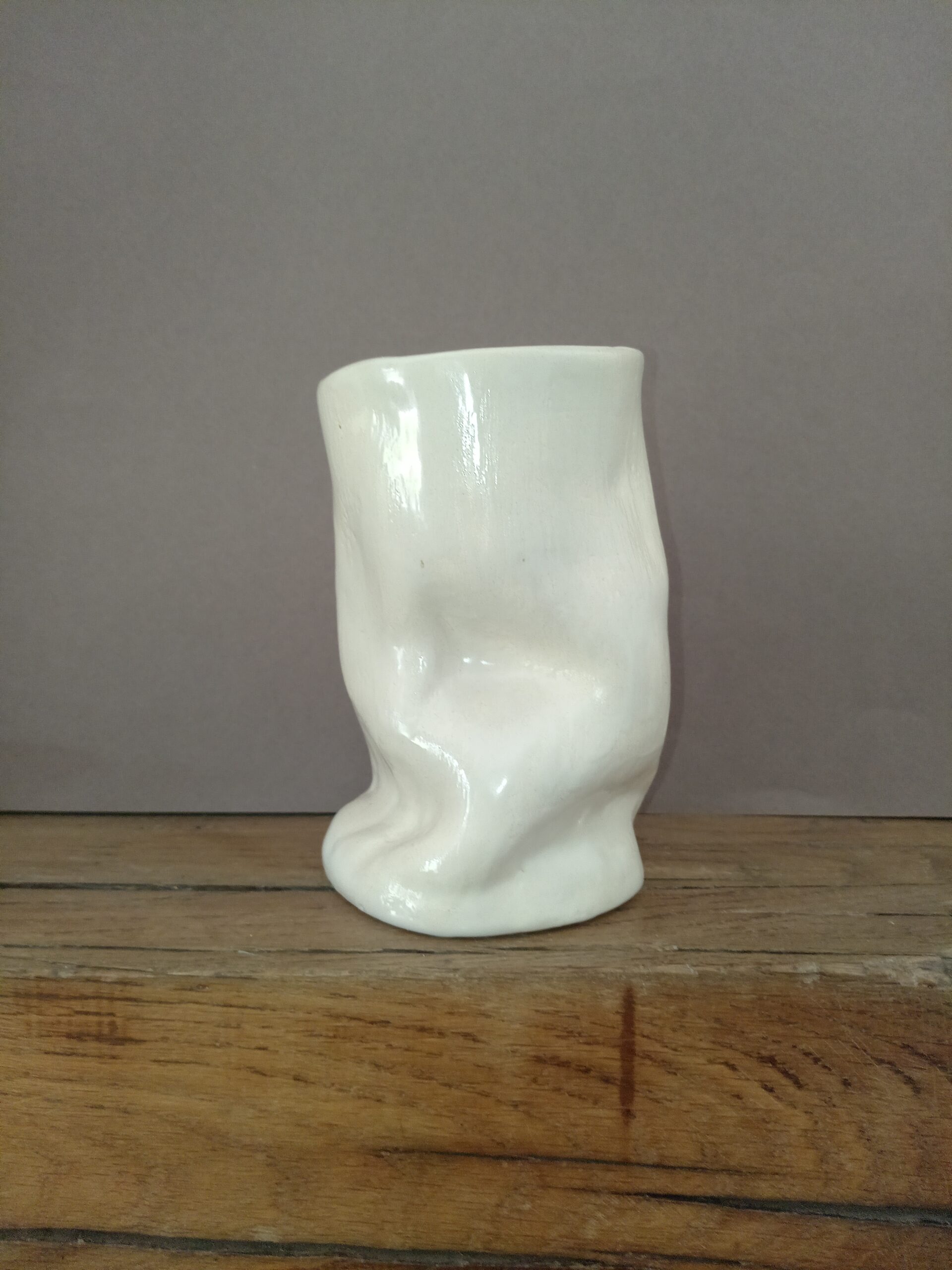 vase en grès blanc, émail couverte brillante