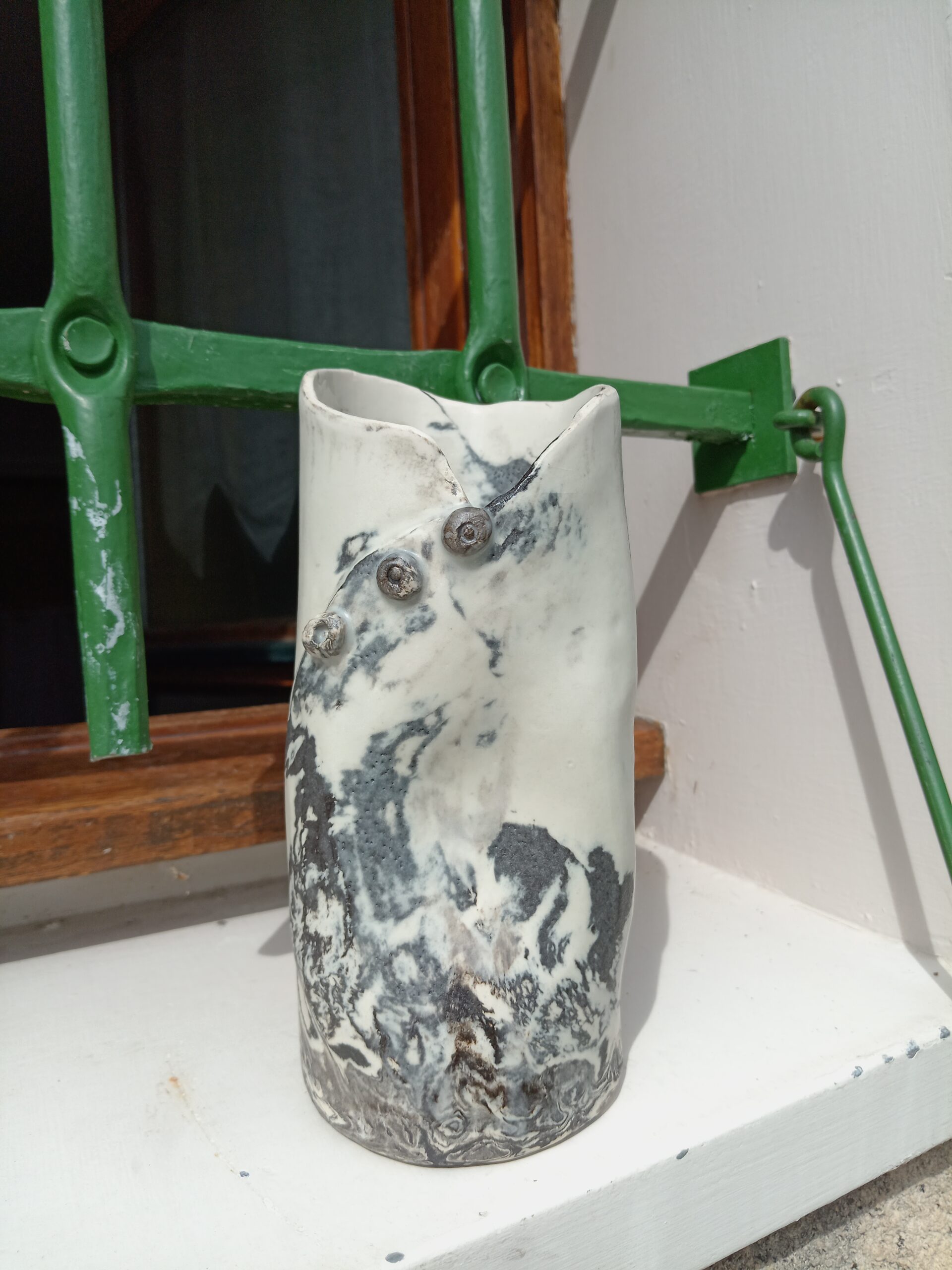 vase en grès noir et blanc émail couverte transparente pur sublimer l’effet de marbre
