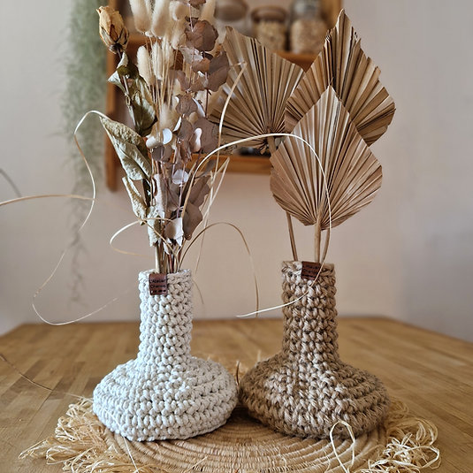 🌾 Vases pour fleurs séchées 🌾 Réalisés au crochet, en fibres naturelles. Légers et sans contenant intérieur, ils sont conçus pour accueillir uniquement des fleurs séchées. Vases vendus seuls, sans les fleurs.