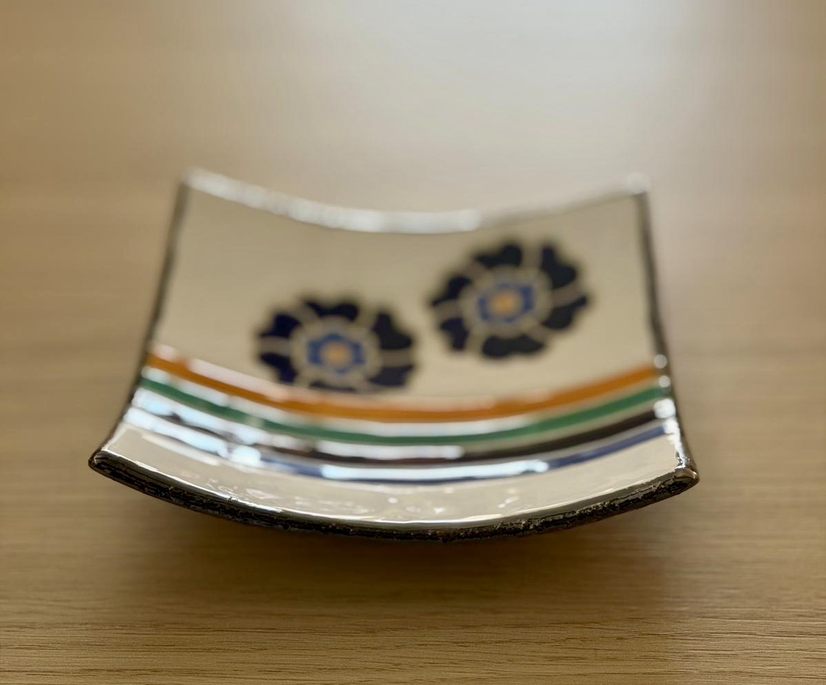 L’objet d’art Vide poche en céramique artisanale Sillage de printemps (Bleu) est créé en utilisant la technique du cerne émail aux motifs géométriques et floraux.