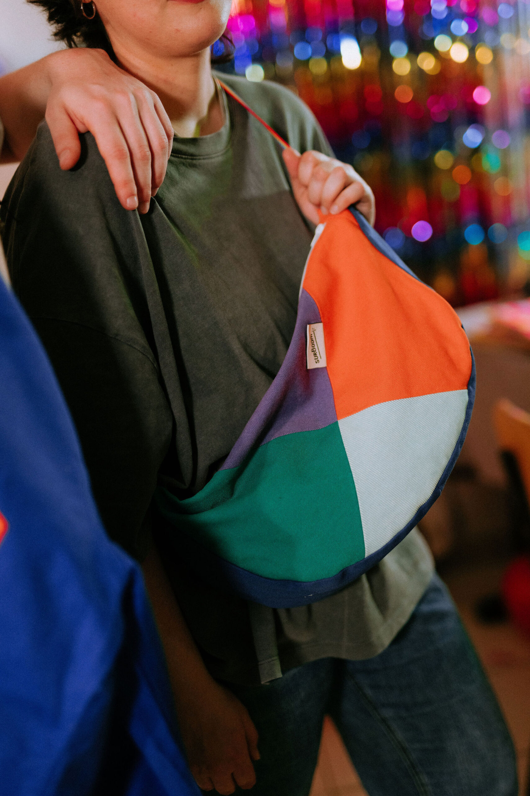 Le sac Watermelon, c’est la fusion parfaite entre une banane et un sac à main. Pensé pour te suivre dans tes journées trépidantes (sans pépin de préférence), il est assez grand pour contenir ton bric-à-brac et ta gourde pour rester hydraté·e même sous le soleil de Juillet. Chaque pièce est née d’une chasse au trésor textile : je chine des vêtements oubliés dans les vides-greniers, les ressourceries, ou sur Le Bon Coin, principalement en Occitanie. Une fois dénichés, ces habits sont lavés, démontés, et transformés en bananes super stylées. Notre truc, c’est le coton, mais parfois il se retrouve mélangé à du polyester ou de l’élasthanne. Pas toujours l’idéal, mais je fais avec ce que je trouve ; un choix qui reflète aussi la réalité de notre consommation. L’idée est de transformer l’existant pour créer quelque chose de durable et unique, tout en restant fidèle à l’esprit de l’upcycling.